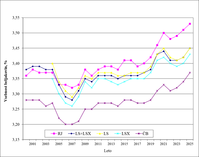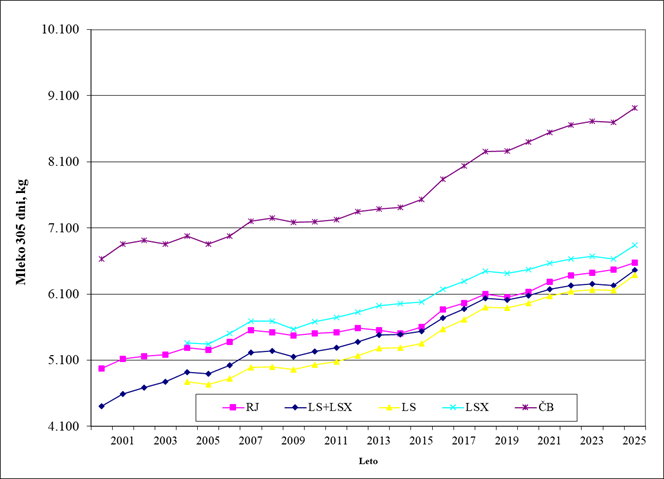 | Leto | Mleko, kg | Maščobe, % | Beljakovine, % |